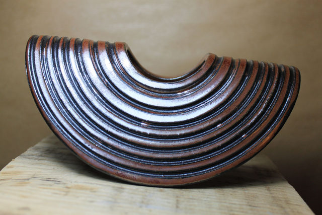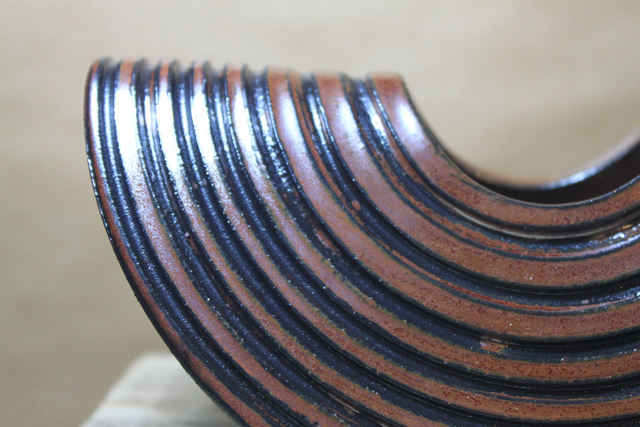 Inspiré par les artefacts retrouvés dans les sables d'Égypte, la sculpture Siwa 'Sillon' semble porter en lui les traces d'un temps oublié. Sa surface cuivré et noir mate est rythmée par des rangées d'incisions précises, évoquant les techniques de poterie primitives ou les parures rituelles.